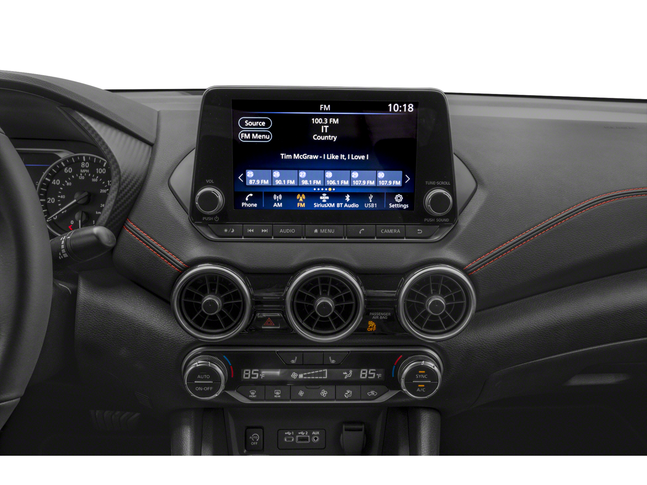 • Radio: AM/FM w/RDS/MP3/Aux-In -inc: 6 speakers plus 2 tweeters in A-pillar, 8" color display w/multi-touch control, streaming audio via Bluetooth®, Bluetooth® hands-free phone system, hands-free text messaging assistant, Siri Eyes Free, Google Assistant voice recognition w/Apple CarPlay and Android Auto, NissanConnect, (1) front USB connection port (type A), (1) additional front USB (type C), (1) charge-only USB (type A) center console and SiriusXM radio w/advanced audio features